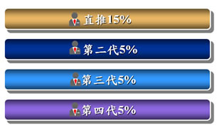 四.輔導獎勵 (不含推薦獎金及每季分紅獎勵) 您可以獲得您直接或間接推廣介紹而加入的夥伴,其當月所領取的獎勵 (業務獎勵及全球返利獎勵),比例如下: 直推15%;第二代5%;第三代5%;第四代5% 例: 當您直接推廣的夥伴A當月獲得10,000積分的收入,而您推廣介紹的夥伴A又推廣介紹了B. |